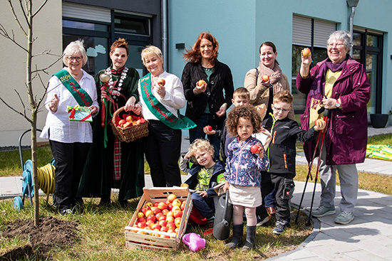 Am Familienzentrum Lukas in Gladbeck-Butendorf steht ein neuer Apfelbaum, gespendet von den Appeltatenmajestäten.